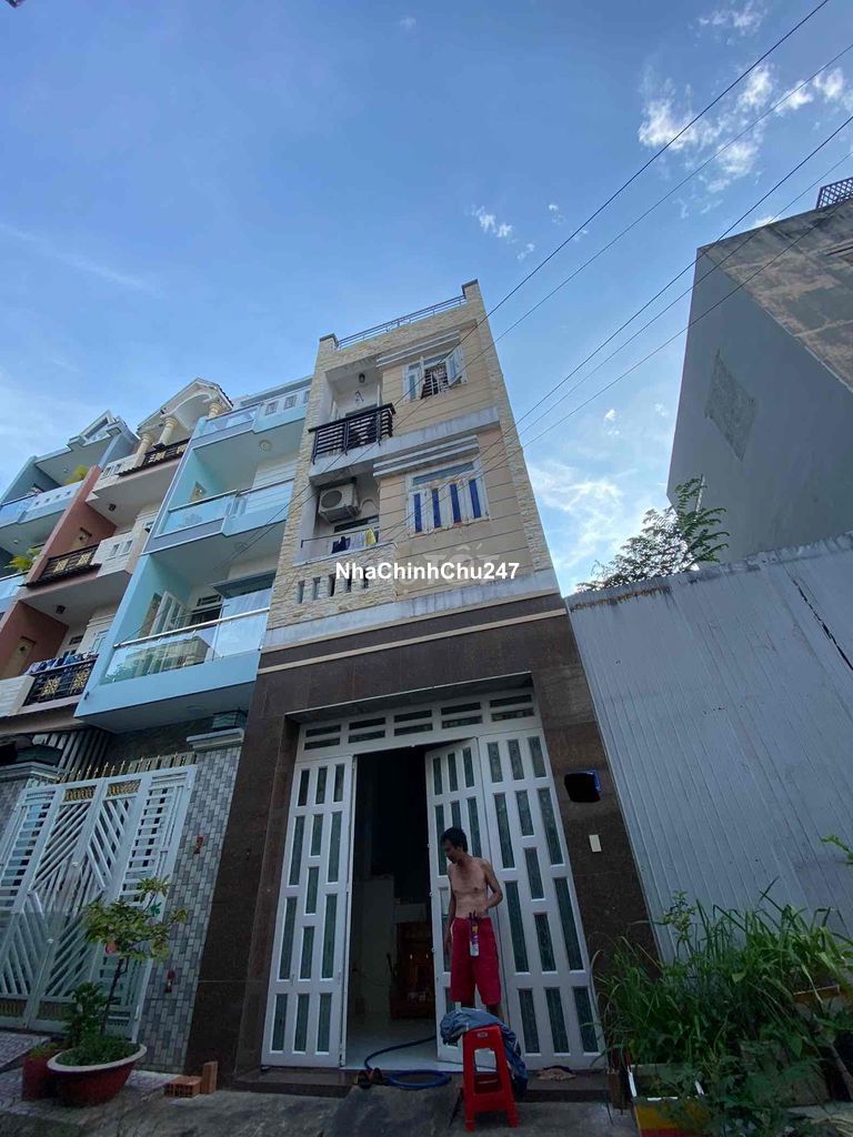 ✨ Diện tích chuẩn đẹp: Ngang 4m x Dài 13m, không lộ giới, sổ hồng riêng, công nhận đủ – vuông vức, không lỗi phong thủy! 🏠 Kết cấu: • 1 trệt, 2 lầu, sân thượng có tum tiện nghi • 4 phòng ngủ – 3 nhà vệ sinh • Đang ngăn 2 bên:  👉 1 bên để ở  👉 1 bên cho thuê 5 triệu/tháng, thu nhập sẵn có! 🚗 Lợi thế vị trí: • 2 mặt tiền đường số, xe hơi tránh nhau dễ dàng • Đường thông tứ phía, tiện di chuyển, buôn bán • Khu dân cư hiện hữu, an ninh, tiện ích đầy đủ 📜 Pháp lý chuẩn: • Sổ hồng riêng – công chứng nhanh!