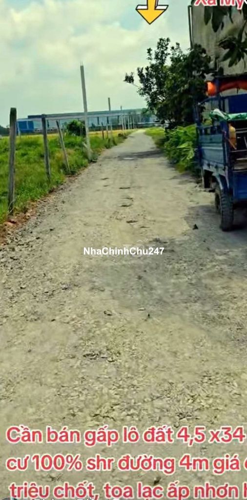 tôi chính chủ Cần bán gấp lô đất 4,5x34 thổ cư 100% shr cách tỉnh lộ 9 500m giá 660 triệu, tọa lạc xã mỹ hạnh