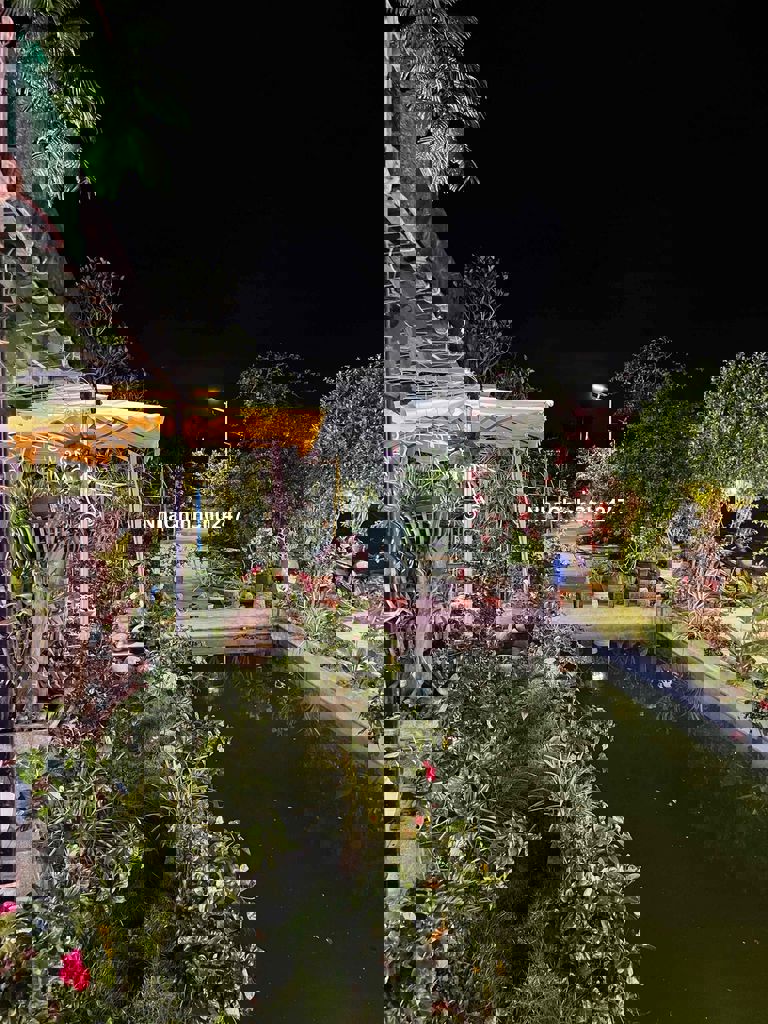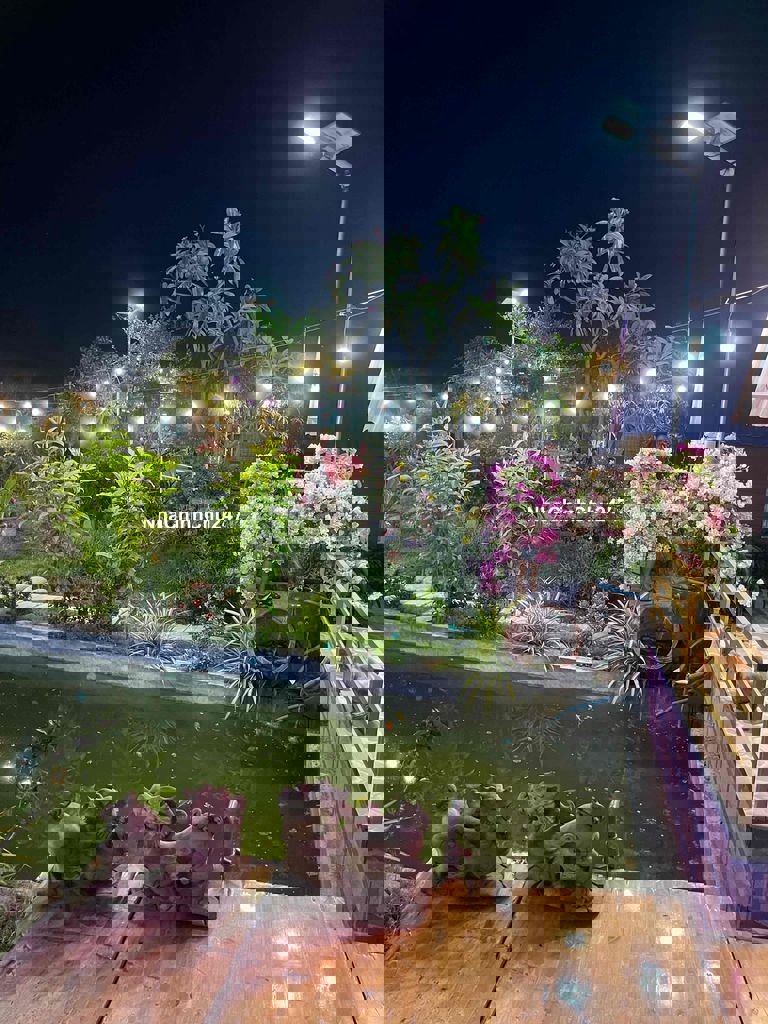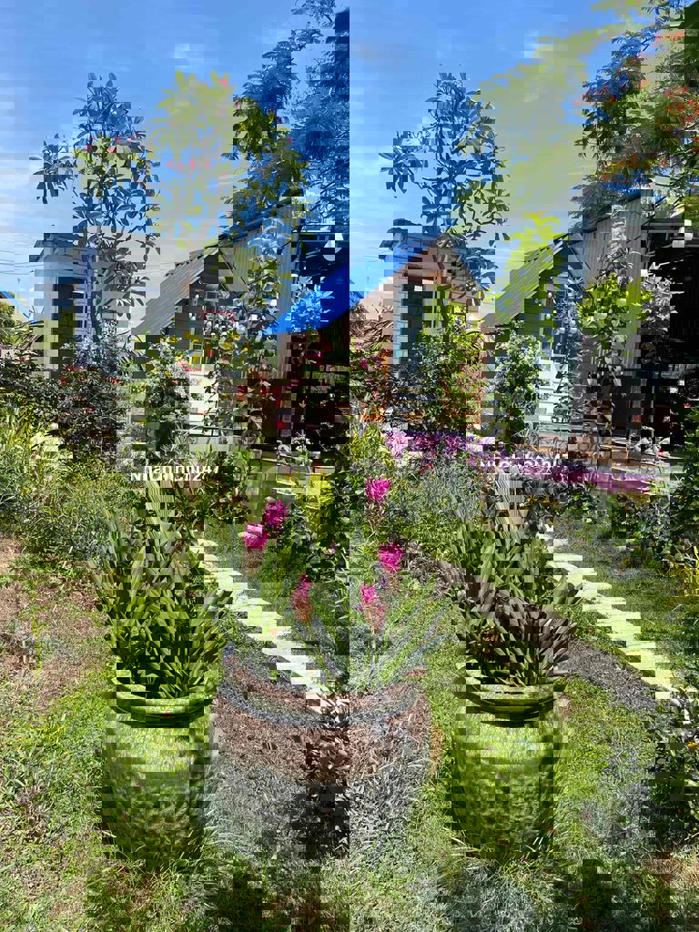 Nhà vườn đẹp lung linh: diện tích hai ngàn sáu trămm2 có 3 trăm m2 thổ cư 2 P ngủ, 2 tolel , 2 bungalow , 1 sảnh cf , 1 sảnh karaoke, có hồ nước đẹp, có chuồn chim Bồ câu pháp, có chuồn chim trỉ đang đẽ trứng, và có chuồn gà đang đẻ trứng, có vườn cây ăn trái các loài đang có trái ăn, có bông hoa các loại tha hồ ngắm, có điện nước máy mạng ff chính chủ, đậu một lúc 4 chiếc xe hơi trong sân, cách chợ 2 km , chính là nơi nghỉ dưỡng yên tịnh trong lành xanh sạch đẹp - cách quốc lộ 1 - 2 km 59/1 thôn Phú nghĩa xã hàm cường, hàm thuận nam tỉnh Bình thuận