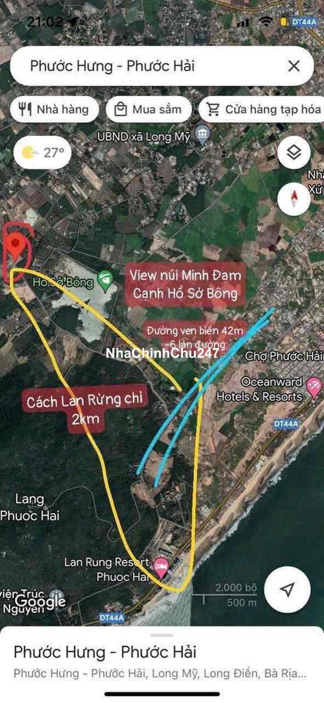 TRỤC CHÍNH PHƯỚC HƯNG PHƯỚC HẢI- ĐI BIỂN 2KM -1000M2 -100TC 5.2TY