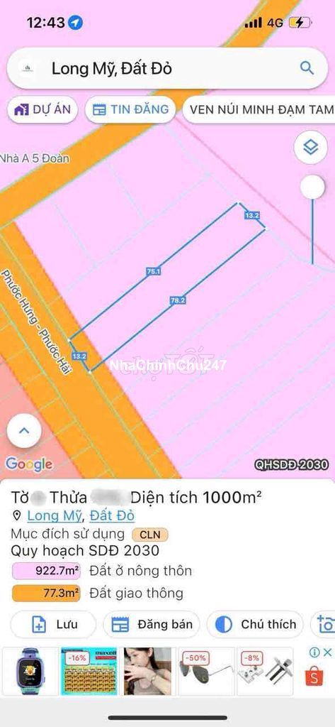 👉TRỤC CHÍNH PHƯỚC HƯNG PHƯỚC HẢI- ĐI BIỂN, CÁCH LAN RỪNG RESORT CHỈ 2KM 🌈DT 1000m2 sẵn 100m2 Thổ cư ngang 13.2m x 78m. ☘️ ĐƯỜNG LỚN VIEW NÚI SIÊU ĐẸP 🧨🧨🧨 GIÁ CHỈ 5TY200 thương lượng LH *** Hiền nắm chủ